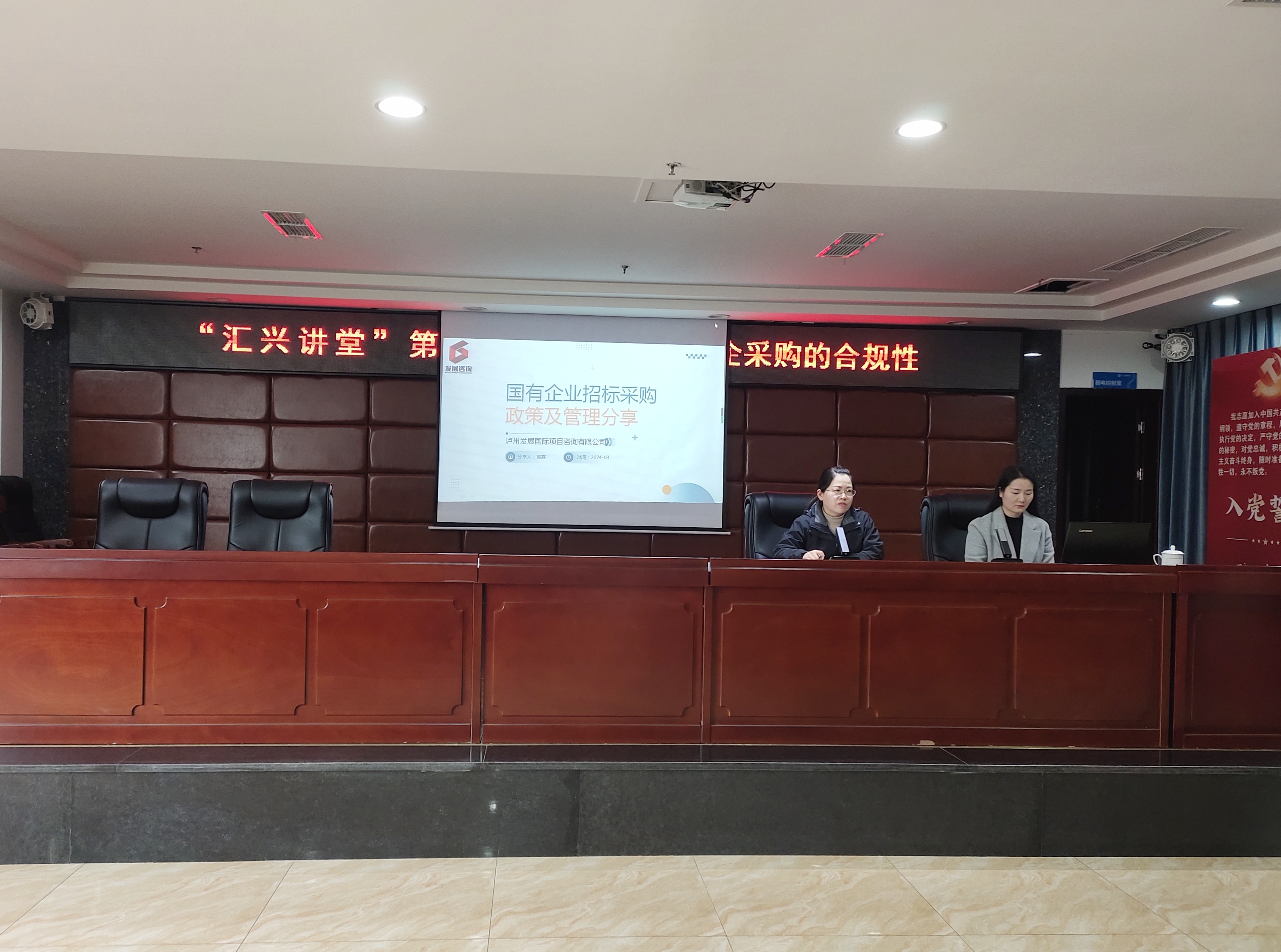 為更好地規(guī)范公司采購行為,服務(wù)公司發(fā)展,3月6日,集團(tuán)公司在二樓會議室舉辦“匯興講堂”第一期培訓(xùn)班。此次培訓(xùn)以“國企采購的合規(guī)性”為主題,邀請瀘州發(fā)展國際項目咨詢有限公司采購部副部長雍霞主講,集團(tuán)公司及各子公司60余名管理人員參加。