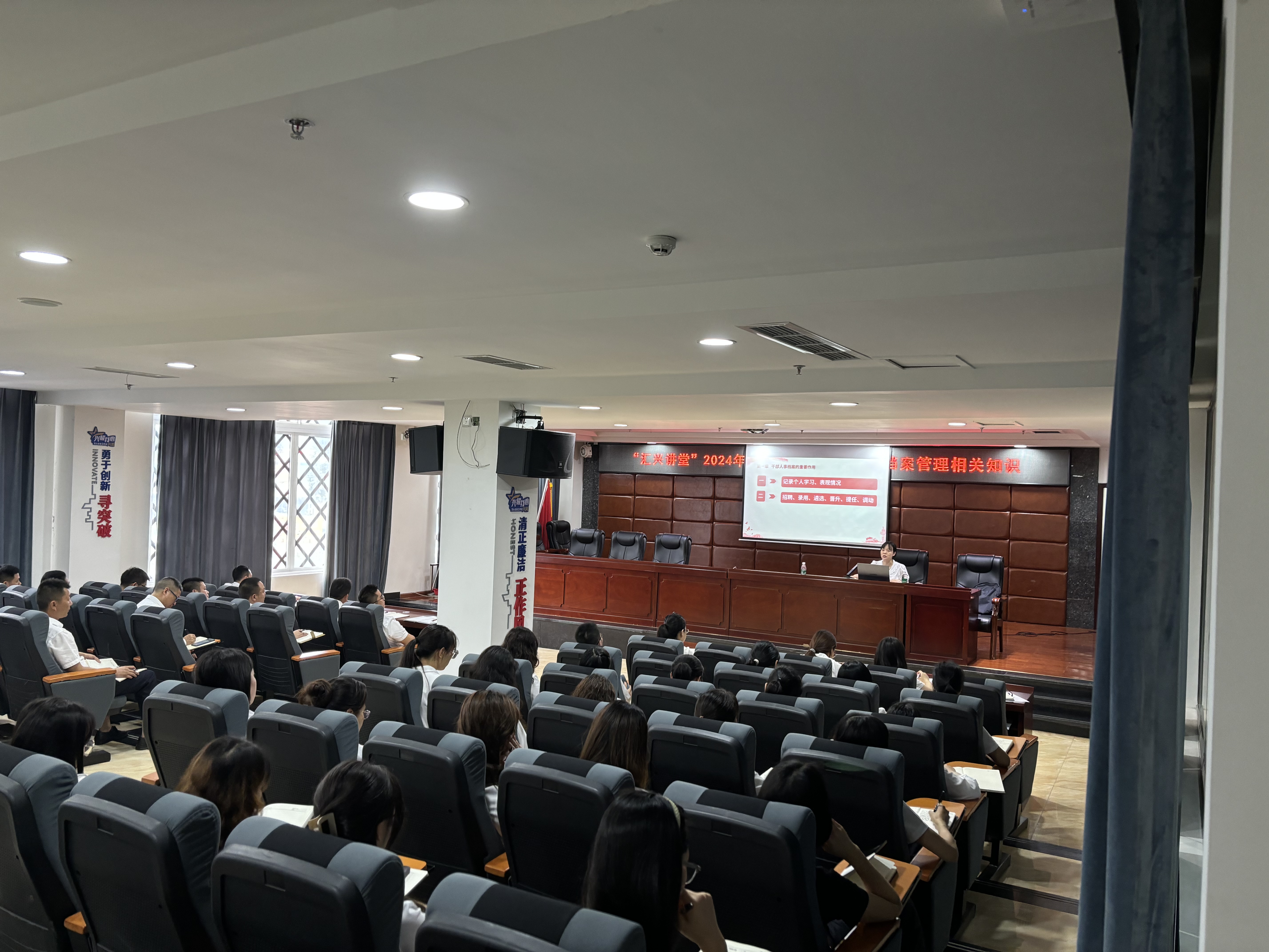 為進(jìn)一步規(guī)范人事檔案管理工作,6月26日,集團(tuán)公司在二樓會議室舉辦“匯興講堂”第三期培訓(xùn)班。此次培訓(xùn)以“人事檔案管理知識”為主題,由縣黨員和干部綜合服務(wù)中心副主任孫小艷主講,總公司及各子公司共52人參加。